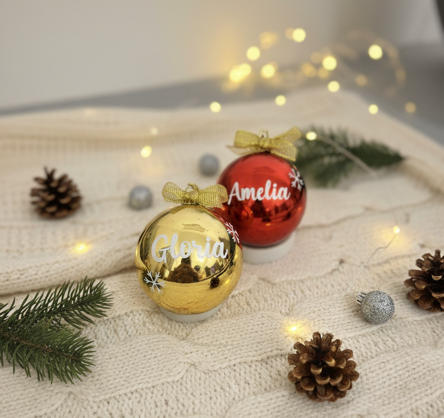 Pack de 4 chirimbolos: dos dorados y y dos rojos. Se personalizan con un nombre por chirimbolo. Se entregan en caja con visor, pronto para regalar.