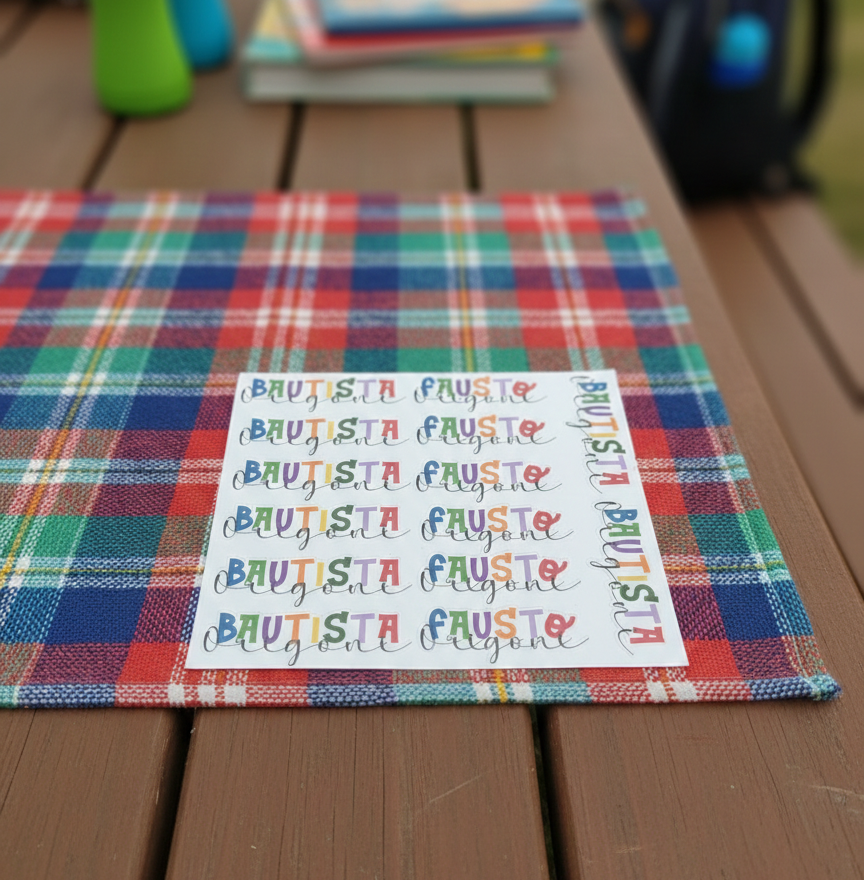 Etiquetas resistentes al agua CategorÃasFechas especiales Egresados Año nuevo DÃa de los enamorados Halloween Navidad y Reyes Sorpresitas Decoración Bolsas y cajitas Golosinas Packs completos PapelerÃa Emprendedores Etiquetas resistentes al agua$140 – $220 Plancha de 18 o 32 etiquetas resistentes al agua con nombre y apellido. Ideales para tuppers y botellas. (En “personalización de producto” escribir el o los nombres y apellidos que necesites, y las aclaraciones si son necesarias) Cantidad Elige una opción1836Limpiar Etiquetas resistentes al agua cantidad Comprar ahora SKU: N/D CategorÃa: PapelerÃa Información adicional Información adicional Cantidad 18, 36 Productos relacionados Calendario Flores $220 Añadir al carrito Fotos + Galletitas $540 Añadir al carrito Calendario 2026 heladera $500 Añadir al carrito Planner mensual $120 Añadir al carrito