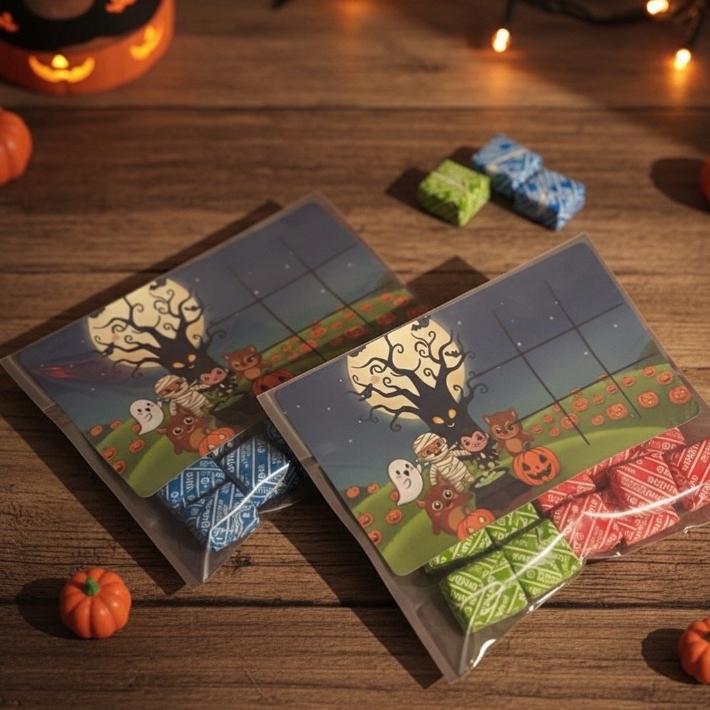 Una forma divertida de presentar los caramelos, con un tablero de ta te ti. Incluye 10 caramelos y bolsa transparente.