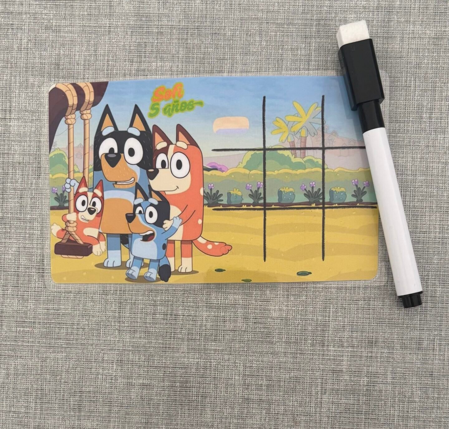 Tablero de ta te ti plastificado, con marcador de pizarra con borrador en la tapa, para jugar, borrar y volver a jugar las veces que quieras.